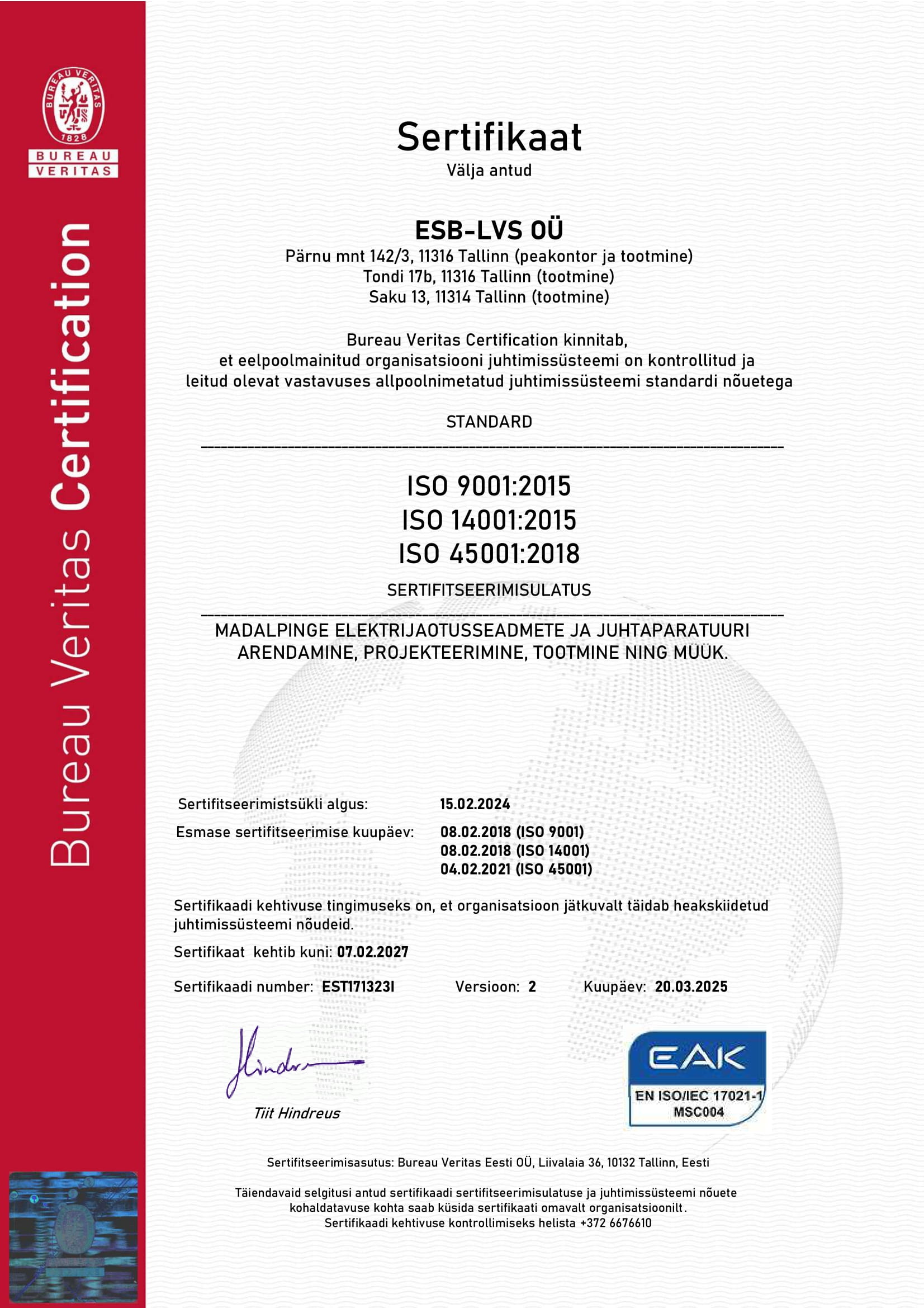 2024 November – ESB Latvia SIA – Madalapinge elektriikilpide projekteerimine, tootmine ja müük Lätis.